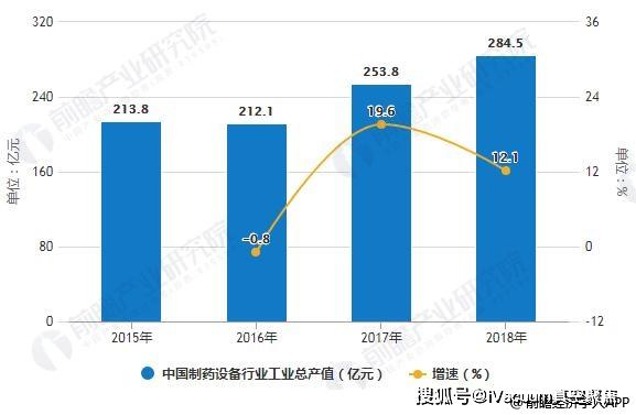 2015-2018年中國(guó)制藥設(shè)備行業(yè)工業(yè)總產(chǎn)值統(tǒng)計(jì)及增長(zhǎng)情況